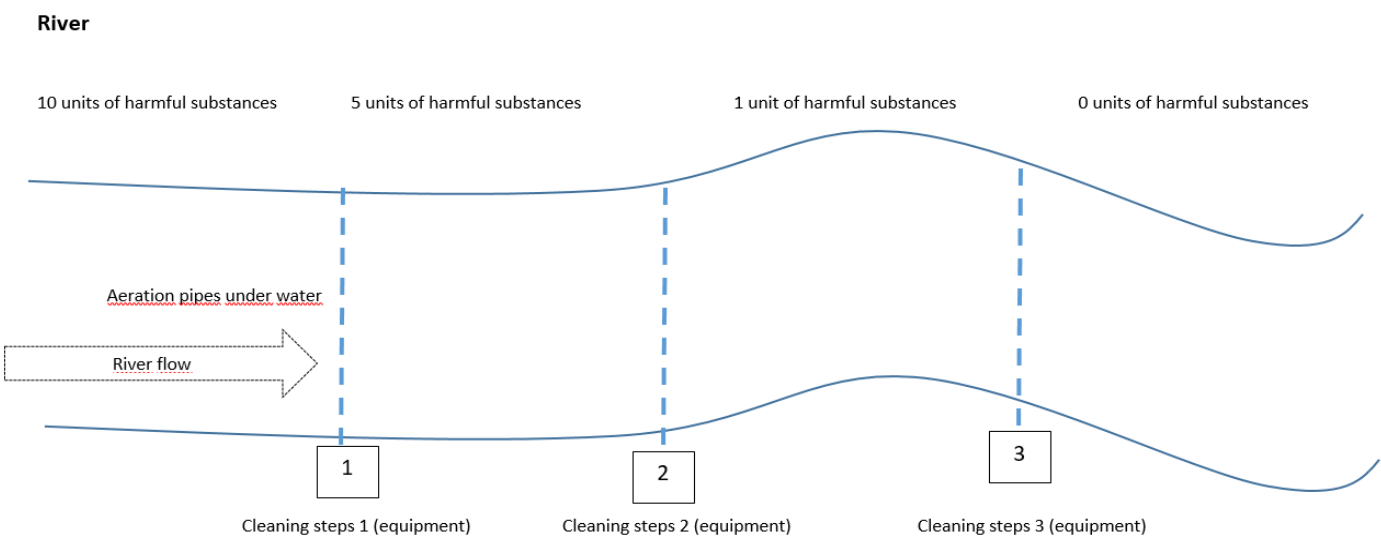 The composition of the technology (1, 2, 3) - the minimum three stages of river cleaning