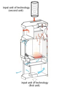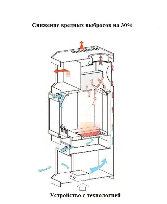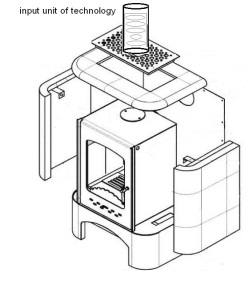 The principle used in the device concerns only those substances that are necessary to improve and increase the efficiency of the fireplace, without affecting other substances.
